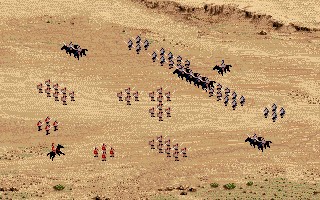 Допустим, у нас ничего не вышло и боя не избежать. Перед нами появляется полянка и нам предлагается выбрать построение наших войск. Что лучше – заманить противника слабым центром и раздавить флангами или сосредоточить силы справа, дабы обогнуть его левый фланг и зайти с тылу? Да что там мучиться, «в линию» и будь что будет. Когда мы изберем вид построения, нам покажут построение противника, благодаря чему мы сможем выбрать тактику на бой: стоять на месте до последнего или броситься в лобовую? А может еще чего хитрого удумаем? Может быть, только в конечном счете исходить нужно из уровня… крикливости вашего генерала, который представлен одиноким всадником в правом нижнем углу экрана. Вокруг генерала имеется окружность, которая очерчивает зону, которую покрывает командный голос командира. В зоне «управления» вы можете, поставив игру на паузу, разрешить одной центурии (или всему легиону) броситься на ближайшего врага или идти в указанном направлении. Стоит солдатику выйти за «окружность командира» - считайте, что у вас стало одним отрядом меньше. Еще хуже будут дела в том случае, если вашего генерала убьют – мораль моментально станет минимальной. Но стоит прибить вражескую выскочку, и вам останется только бежать вдогонку за убегающими туземцами, испугавшимися смерти лидера.