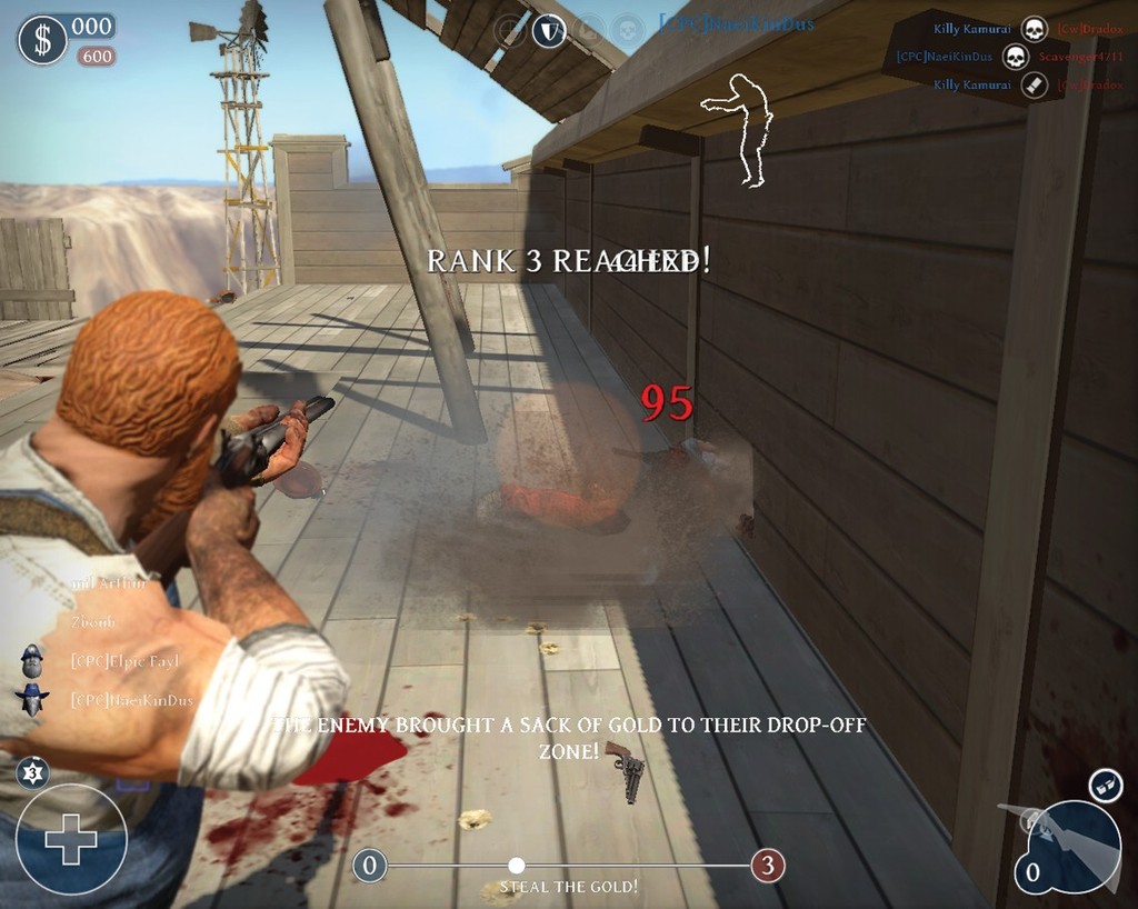 Gunsliger умеет стрелять из своего шестизарядного магнума как из пулемета – да и перезаряжается оружие очень шустро.Незаметно пробравшись к стационарному пулемету, можно успеть «накосить» много вражьих голов, правда пулеметчик становится хорошей мишенью для снайпера.
