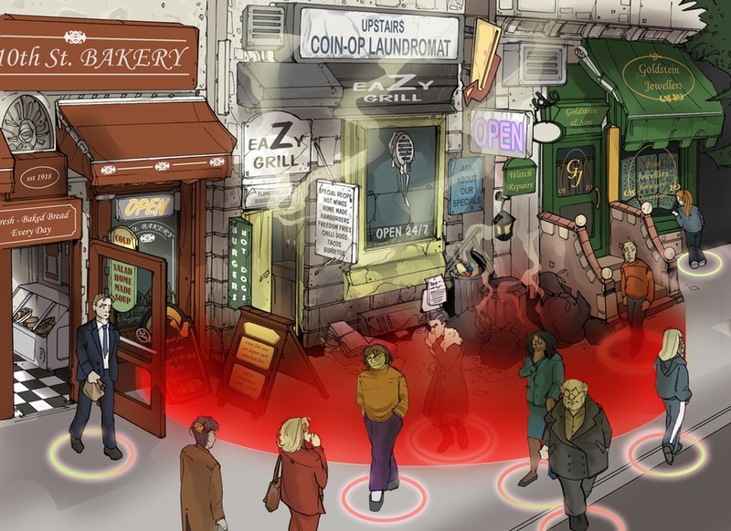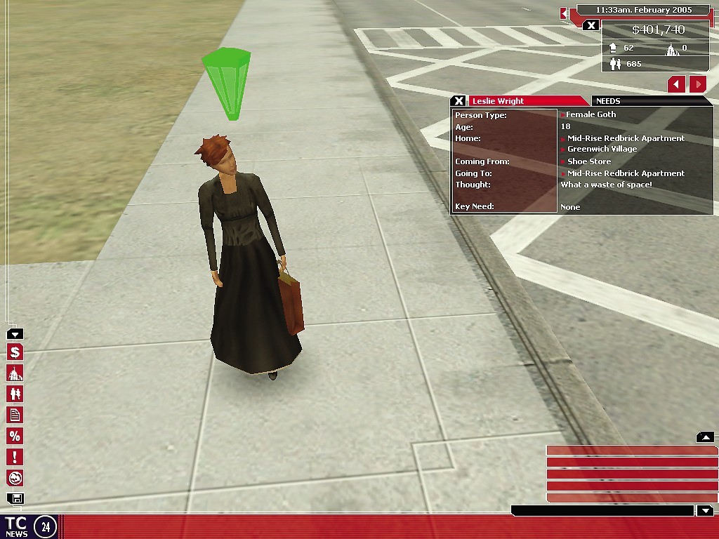 А правила просты. Щелкая по прохожим, либо по жилым зданиям, узнаем потребности населения. Находим свободное место и строим необходимое заведение. На каждую постройку отводятся «очки улучшения», которые можно потратить, например, на приобретение вывесок, зеленых насаждений или установку кондиционеров. Все эти траты направлены на повышение привлекательности здания, увеличение его вместимости и расширение зоны действия.