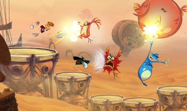 В игре можно не только как угорелому носиться по декорациям, но и оседлать москита, чтобы отстреливать недругов в полете. Тогда Rayman Origins превращается в классический двухмерный шутер. Не обошлось и без традиционных для жанра огромных боссов, которых при всем их грозном виде довольно просто одолеть. Признаться, когда выбираешься из кучи-малы из обычных противников, ловушек и ездящих платформ, ожидаешь куда более эпических битв, чем те, которые протекают с местными боссами.