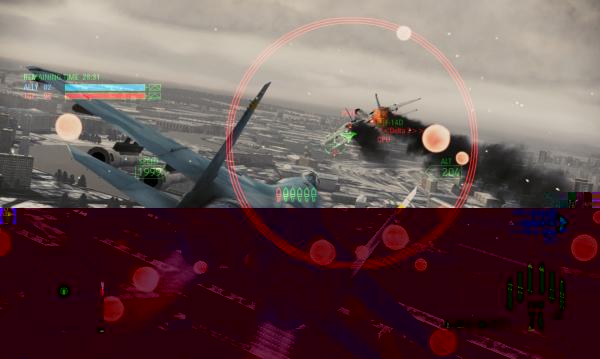 Элемент, который призван повысить накал страстей в воздушных боях и которым очень гордятся разработчики — режим dogfight. Подобравшись к противнику поближе, можно нажать оба «курка» на геймпаде, и тогда истребитель начнет преследовать его в автоматическом режиме. От игрока требуется регулировать скорость и держать врага на прицеле. Через некоторое время прицел станет красным, что гарантирует попадание ракеты. Отстреливать недругов можно и по старинке, на дальних дистанциях, но работает этот способ не всегда. Пилоты-асы запросто уходят от ракет, их можно сбить только при инициации dogfight. В нем сбитые самолеты демонстрируются в выгодных ракурсах и в замедленном режиме. Dogfight — безусловно, находка разработчиков, так как резко повышает динамику сражений и вовлеченность в них игрока. Гнаться за противником по пятам куда интереснее, чем пускать в едва виднеющиеся на горизонте точки ракеты с теплонаведением. Правда, игра чересчур настойчиво подталкивает к использованию этой «фишки». Dogfight — не только самый веселый, но и самый действенный способ расправы над врагом. Как только это осознаешь, начинаешь придерживаться нехитрой схемы: подлететь к противнику — завязать dogfight — дождаться, когда покраснеет прицел — сбить мерзавца — подлететь к следующему противнику. Эффективно, эффектно, но как-то уж больно однообразно.