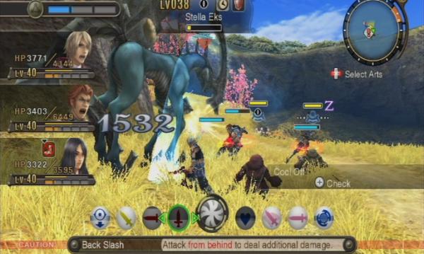 Примечательно, что игра выдает поощрения чуть ли не за каждое мало-мальски значимое действие, чем напоминает некоторые онлайн-проекты. С MMORPG у Xenoblade едва ли не больше общего, чем с рядовыми RPG. Ярче всего это выражено в схватках, которые разительно отличаются от размеренных пошаговых боев, давно ставших визитной карточкой жанра. В Xenoblade сражения стремительные, без пауз, все маневры происходят в режиме реального времени. Когда герой находится рядом с врагом, он начинает самостоятельно его кромсать. Задача игрока — выбирать способности для использования в промежутках между обычными атаками. После применения способность некоторое время «перезаряжается» — чем она сильнее, тем дольше приходится ждать. Такая псевдопошаговость заложена в основу большинства современных MMORPG, и разработчикам Xenoblade удалось перенести ее в формат одиночной игры.