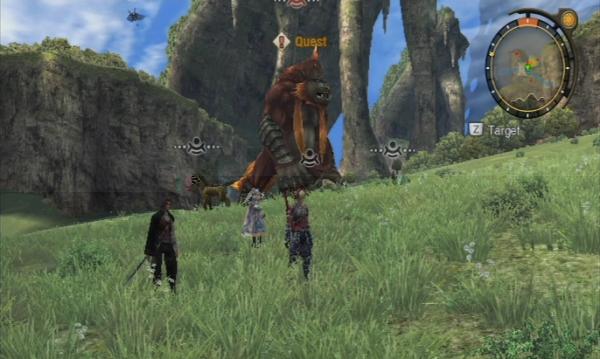 Управлять можно только одним бойцом, остальные действуют по собственному усмотрению. Порой отчаянно недостает возможности переключаться между бойцами по ходу битвы, но очевидно, что это ограничение присутствует отнюдь не из-за недосмотра разработчиков. Сражаться с каждый встречным монстром совсем не обязательно, большей части живности в Xenoblade нет никакого дела до игрока. Враждебные существа помечены особыми иконками в зависимости от того, как они обнаруживают цель — зрительно или по звуку. «Глазастые» могут приметить игрока издалека, но поскольку сектор обзора узкий, можно спокойно пробежать у них под боком. С «ушастыми» такой фокус не пройдет, зато они реагируют лишь на то, что происходит в непосредственной близости. Иногда на локациях появляются существа особого типа — элементали, — которые агрессивно реагируют на применение рядом с ними магии.