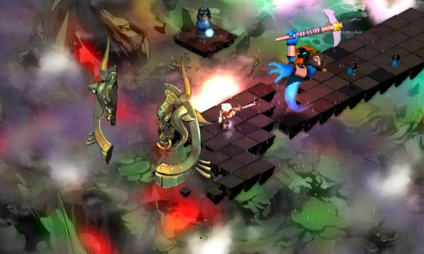 Особое очарование похождениям юного героя придает визуальное оформление. Будучи скромной инди-игрой, Bastion не может похвастать сложными трехмерными моделями персонажей, роскошными пейзажами и прочими чудесами современных цифровых технологий. Вместо них она демонстрирует с любовью прорисованные, детализированные «акварельные» уровни, весельную цветовую гамму и забавных монстров. В сочетании с замечательно подобранной музыкой все это создает атмосферу настоящего сказочного приключения — точно такую, какая была в вашей любимой детской книжке.