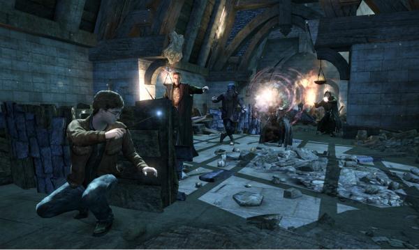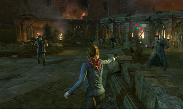 Интереснее стала режиссура миссий. Излюбленный прием разработчиков — переключать действие между разными героями. Они то и дело разлучают Гарри, Рона и Гермиону, или вовсе передают управление совершенно другим персонажам. Так, во время атаки на Школу волшебства Хогвартс в роли Минервы Макгонагалл мы сдерживаем наступление великанов, затем в роли одного из учеников минируем мост и, управляя его другом, прикрываем отступление товарища снайперским огнем. Лучше смотрятся и сражения с боссами. Где-то нужно вовремя нажать на указанные клавиши, чтобы отбить удар или раскрошить заклинанием летящий в вас камень, где-то необходимо быстро убегать по лестницам и коридорам, на ходу расстреливая врагов или предметы окружения, где-то — изо всех сил удерживать прицел на противнике, чтобы сфокусировать атаку. В итоге сражения выглядят эффектно: штурм Хогвартса и финальная битва с Волан-де-Мортом действительно похожи на по-голливудски эпические постановки.