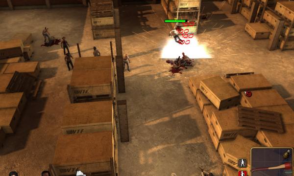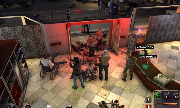 Негусто, прямо скажем, особенно на фоне иных тактических игр. И все же сражаться здесь интересно. Во-первых, все очень динамично. Это, конечно, не ураганный Alien Shooter, но, тем не менее, зомби не прячутся по углам, не используют укрытия, а неумолимо надвигаются на вас. Нужно быстро соображать — кто, кого, чем и как. Можно выделить своих, потом выделить врагов, нажать shift, и тогда отряд начнет сам расстреливать ходячих мертвецов, но в игре полно ситуаций, когда нас буквально зажимают в углу, вынуждая использовать паузу и вручную распределять все действия и цели. Иногда даже приходится переключаться между бойцами, расположенными на разных этажах, и разделять отряд на две группы. Цена ошибки велика: мало того, что враги больно и быстро кусают, так ведь, бывает, даже после одного удара у бойца открывается кровотечение, а на кровь все окрестные зомби собираются как папарацци на лысую Бритни Спирс.