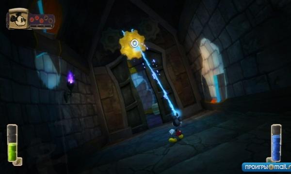 Самое же, пожалуй, ужасное в Epic Mickey — это камера. Она настолько затрудняет прохождение, что складывается впечатление, что Микки и на нее налил искривляющего растворителя. Возможно, в любой другой игре это неуправляемое безобразие еще можно было бы как-то терпеть, но здесь это просто невыносимо. Ведь все время приходится стирать и возводить, проходя сквозь стены и полы. Плюс огромное количество очень маленьких закоулков. Плюс наседающие чудовища. Плюс вездесущие кислотные реки и просто обрывы. Благодаря совершенно неадекватной камере разобраться в этом безумии или хотя бы просто выжить очень нелегко.