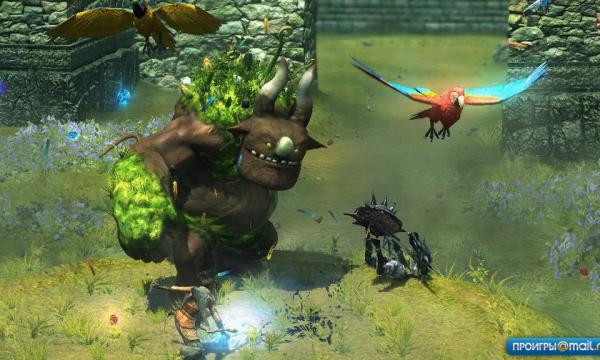 Что уж говорить о главной «очаровашке», мадзине. На его глуповатых репликах и детских интонациях держится львиная доля сказочной атмосферы. Этакий Винни Пух с пудовыми кулачищами; он потешно кряхтит, забавно ворчит врагам «Уходи», благодарно лепечет герою «Ты хороший» и совсем уж несерьезно вопит «Эгегей», когда дело спорится. Чтобы окончательно отбить у игрока желание высматривать в «Забытом королевстве» серьезное фэнтези, авторы наводнили волшебный мир говорящими животными. Мыши, попугаи и прочие снегири охотно снабжают героя агентурными разведданными и просто делятся с ним глубокомысленными соображениями по поводу происходящего.