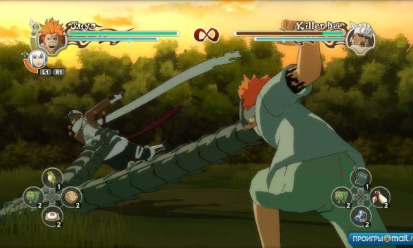 Пару минут вы что есть мочи лупите врага всеми доступными методами, затем он отскакивает на безопасное расстояние, выкрикивает что-то проникновенно-пафосное и наступает самое веселье: резво нажимая всплывающие на экране комбинации клавиш, вы заставляете своего персонажа творить совершенно нечеловеческие штуки. Наруто дает свободу внутреннему демону, отращивает жуткие багровые хвосты, звереет, рвет с корнем деревья, отбивается от гигантских змей, превращает половину локации в кратер, а затем обрабатывает злодея каким-то огромным энергетическим лучом. И это, поверьте, еще не самый эпик.