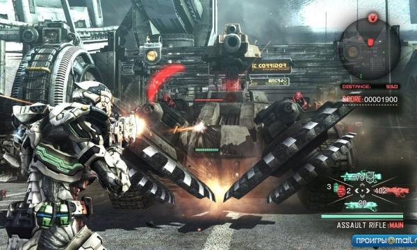 Главный герой Vanquish умеет жить в темпе окружающего мира. На первый взгляд, юноша по имени Сэм ведет себя так же, как герои большинства современных шутеров от третьего лица. Он бегает, прячется от шквального огня за углами и заборами, лихо перекатывается и свирепо лупит врага кулаками, подобравшись достаточно близко. Под рукой у него есть гранаты и три вида оружия — хотя всего стволов в игре значительно больше, причем помимо стандартных автомато-пулемето-дробовиков наличествует и экзотика вроде дискомета, энергетической пушки и орбитального лазера.