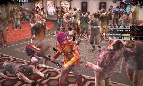 Во-вторых, играть стало веселее. Зомби на экране много больше, но и способов убивать тоже больше; число интерактивных предметов тоже увеличилось. Можно посадить одного мертвеца в инвалидную коляску и сносить им других или огреть ходячий труп детским пистолетом, кассовым аппаратом, электрогитарой, бутылкой виски, огромным плюшевым зайцем или декоративной фишкой с витрины казино. Можно надеть на зомби смешную маску или запрыгнуть в припаркованный в торговом центре подарочный автомобиль и ездить по кругу, давя всех.