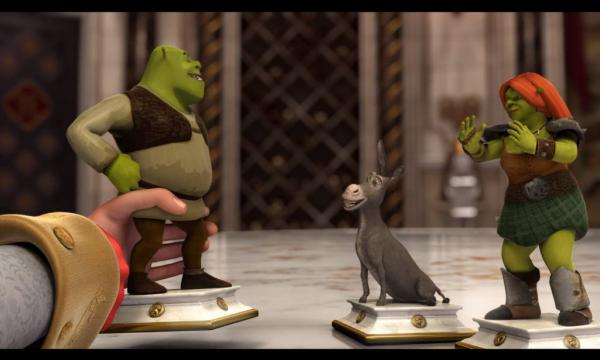 Более того, специально для Shrek Forever After: The Game были записаны видеоролики, практически не отличимые от оригинала по качеству и стилю, но совершенно новые по содержанию. Все это, конечно, увеличивает самостоятельную ценность игры. Добавьте сюда отличную озвучку — хотя Кэмерон Диас и Антонио Бандераса к работам не привлекали, заменившие их актеры сработали отлично. Все персонажи шутят и болтают в стиле оригинала. Картинка тоже в целом весьма приятная.