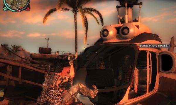 По нажатию одной клавиши крюк легко выстреливается из нашей руки и крепится к проезжающим мимо авто и пролетающим вертолетам, к статуям, деревьям и стенам зданий. Можно проделывать массу веселых трюков: запрыгнуть, например, на вертолет, сбросить его пассажиров и пилотов и улететь на другой конец острова. Или перепрыгивать с машины на машину прямо на ходу. Или сбрасывать снайперов с вышки, зацепив их крюком. А самое главное, теперь можно сцеплять два предмета: например, прицепить врага к взлетающему вертолету или проезжающему мимо грузовику. Надо ли уточнять, сколько это доставляет веселья нам и окружающим?