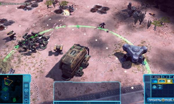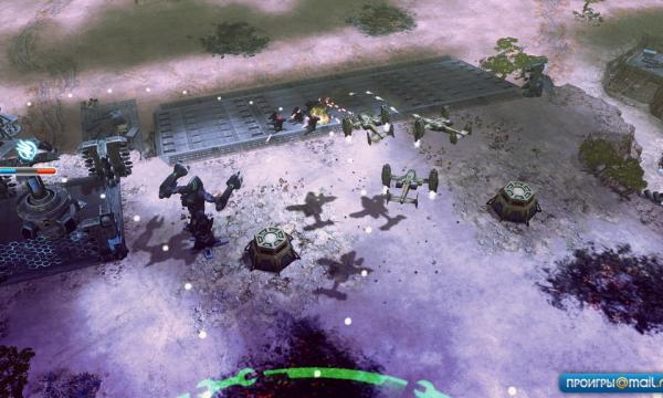 Состав армии зависит от типа краулера, коих представлено три. Наступательный плодит разномастную технику, оборонительный производит в первую очередь пехотинцев в бронекостюмах, а краулер поддержки специализируется на авиации. Подсмотрена эта система в замочную скважину у World in Conflict или в EA LosAngeles сами до нее додумались, история умалчивает. Естественно, лучше всего воевать, используя все три вида краулеров, – только так можно добиться полноценных и многогранных боевых действий. Однако на каждого пользователя приходится строго по одному командному центру, так что совместить усилия получится лишь при совместной игре против компьютера или другой команды.