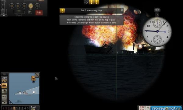 Как ни странно, при всем этом игре не откажешь в атмосферности. Постепенно количество переходит в качество, начинаешь обращать больше внимания на окружение. Замкнутое пространство, одни и те же лица вокруг, пищит сонар, щелкают кнопки управления торпедами. Акустик в команде самый молодой, боцман в свободное (редкое) время пишет книгу, а первый помощник по-пиратски одноглаз, хотя в бою до сих пор не был. Все это довольно забавно. Но, к сожалению, не способно вытащить игру из того болота, в которое его погрузили разработчики.