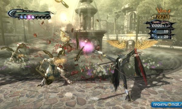 Но что действительно невероятно – при всех претензиях на скандальную славу и успех Bayonetta остается предельно отточенным, выверенным и во многом революционным слэшером. Чтобы вы лучше представляли: примерный эффект сравним с тем, если бы «Крестного отца» раскрасили в аляповатые цвета, надели на всех героев клоунские маски и заставили стрелять друг в друга из пластмассовых пистолетов, оставив культовые диалоги и сцены. По-хорошему игре необходимо выучить наизусть несколько десятков комбо-приемов, уметь нажимать пять кнопок за секунду и филигранно выполнять каждое действие. Ко всему прочему, Bayonetta еще и чертовски сложная игра – у некоторых боссов предусмотрено сразу несколько полосок жизни, а рядовые враги уже примерно через несколько часов убивают с двух ударов. Важно к тому же детально исследовать уровень – всюду разбросаны цветы, травы и какие-то кристаллы, из которых можно сварить особое зелье.