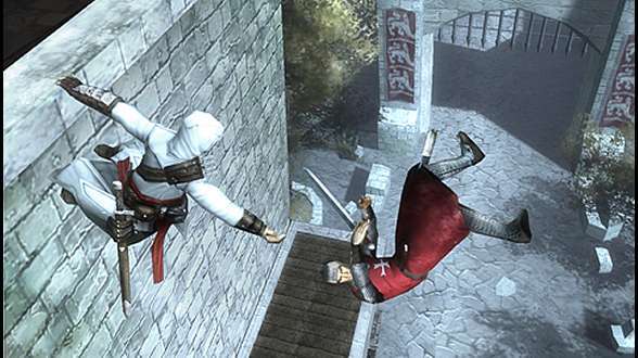 Но все же главные проблемы у игры начинаются в те моменты, когда из более-менее бодрых паркур-побегушек она пытается превратиться во что-то еще. Например, в stealth-action. Здесь наружу вылезают сразу два существенных минуса. Первый – недоразвитый AI, управляемые которым охранники способны меланхолично созерцать небеса, в то время как в метре за их спиной Альтаир лихо вырезает целый отряд хорошо вооруженных рыцарей. Второй – почти нулевая вариативность в достижении цели. Иными словами, если у вас есть задание убить плохого, но хорошо охраняемого парня, попасть к нему можно только одной дорогой, а устранить – одним-единственным способом. Вам не надо думать над обходными путями и не надо выбирать, чем ему перерезать глотку. Поэтому не стоит и пытаться играть в средневекового Солид Снейка, проще идти напролом. Благо, такая альтернатива есть практически всегда.