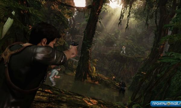 Among Thieves — похвальный пример того, как продолжение правильно оценило амбиции оригинала. Первый Uncharted — отличная игра, все идеи которой лежат на поверхности. Взяв за геймплейную основу экшен-механику Gears of War и попрыгушки Лары Крофт, Naughty Dog (авторы известных аркад серии Jak & Dexter) пересказали все известные науке киноприключения, в которых фигурируют древние артефакты, пещеры, герой-исследователь и его подружка-блондинка. Натан Дрейк, потомок знаменитого пирата, обнаружил на дне океана старинный сундук, а в нем — дневник, следуя которому, можно было отыскать легендарные сокровища Фрэнсиса Дрейка. И понеслось: бандиты, перестрелки, предательства… даже немецкая подводная лодка, застрявшая в джунглях — почтительный поклон в сторону «Индианы Джонса». Как и вся игра.