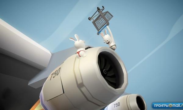 Естественно, что такая элементарная езда наскучивает довольно быстро, поэтому время от времени кролики прыгают по крышам, скачут по скалам на надувной шине и летают по аэропортам на самолетной турбине. Последнее развлечение радует особенно – что может быть лучше, чем влететь в зал ожидания на огромной скорости, засасывая в турбину случайные жертвы? Да и стандартный шоппинг со временем становится не таким уж простым занятием. Люди потихоньку приходят в себя и начинают давать кроликам посильный отпор.