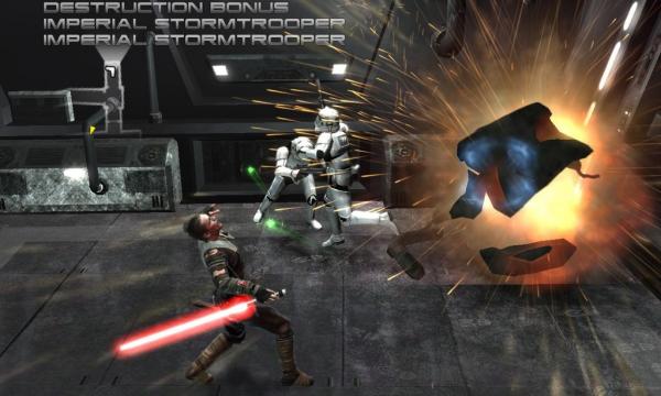 The Force Unleashed – это игра в стиле God of War, Heavenly Sword и тому подобных слэшеров, только вместо холодного оружия и магии тут световые мечи и Сила. Сравнение с God of War не случайно – это проект того же уровня и масштаба. С первых секунд он показывает ошалевшему игроку все свои лучшие качества. В таком случае размениваться по мелочам не стоит, и нам сходу предлагают примерить на себя черную маску падшего джедая Дарта Вейдера. А тот гордой походкой шествует по Кашиику и наглядно демонстрирует превосходство Силы: мановением руки разносит в щепки массивные двери, поднимает рослых вуки в воздух, сталкивает там друг с другом и закидывает куда-то за пределы видимости. Световой меч при этом выполняет лишь роль вспомогательного средства, а на первый план выходит именно Сила и связанные с ней фокусы. И это сразу производит сильнейшее впечатление: такого соединения слэшера с продвинутой физической моделью мы еще не видели.
