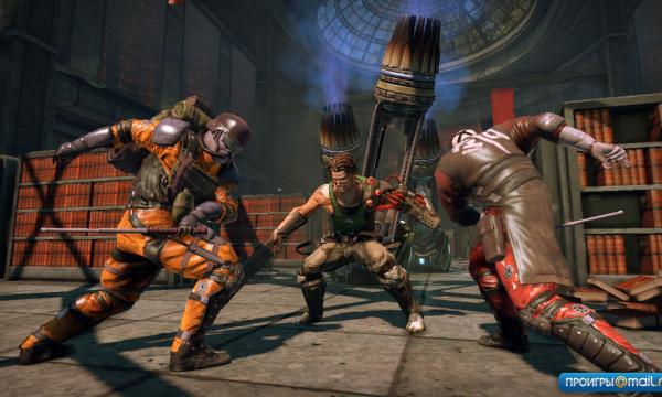 Таким образом, акробатические трюки из характерной черты сериала превращаются в нелепое проклятие и раздражают уже на обучающем этапе. К сожалению, разработчики навязывают нам их выполнение, из-за чего правильный маршрут через уровень приходится искать долго, тратя на это десятки попыток – и все просто потому, что разработчики Grin по дурной привычке не посчитали должным кучнее расставить чекпойнты. После того, как сложный участок локации оказывается позади, приходит время пострелять по злодеям. В распоряжении героя оказывается стандартный набор оружия – пистолет, дробовик, гранаты и т.д. Перестрелки не вызывали бы больших проблем, если бы не постоянная нехватка патронов. Игрока вынуждают пользоваться не огнестрельным оружием, а биомеханической рукой: хватать противников и швырять их в сторону, либо подлетать к ним смертельно опасным снарядом. Это только создает ненужные сложности и делает прохождение неинтересным.