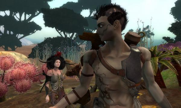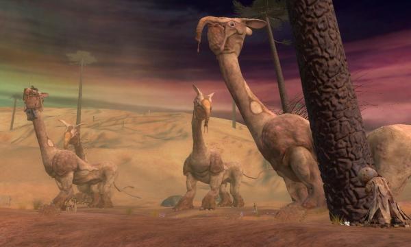 И с процессом в Zeno Clash как раз все хорошо. Пробежка героев по долинам и по взгорьям полна забавных деталей, нестандартных ситуаций и встреч с удивительными (это еще, мягко говоря!) персонажами. Тут, есть, например, говорящая дверь, которая, прежде чем пропустить нас дальше, просит рассказать ей о маленьких желтых цветках на тонких стеблях, мотивируя это тем, что она всего лишь дверь и не может ничего знать о таких вещах. В какой-то момент на нашем пути встают огромные существа мукалозавры, напоминающие переевшую нитратов помесь жирафа и слона. На голове одного из них засел снайпер, охотник за головами Гэта и Деадры, который бросается в нас какими-то маленькими зверьками с парашютом и взрывчаткой на спине. А уже вскоре после этого мы бьемся с какими-то черными зомби, вырастающими из под земли… В самом начале игры мы встретимся с человеком (а человеком ли?), который надел на голову огромный горшок и решил идти только по прямой. Среди врагов попадаются люди, которые обожают долго биться головой о деревья…