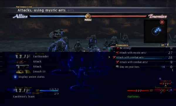 После того, как все приказы отданы, начинается самая настоящая резня: от достигших цели атак разлетаются такие непривычные для JRPG брызги крови. Если в начале игры под нашим руководством — только один отряд и сражения скоротечны, то впоследствии численность войск возрастет, а вместе с ней и продолжительность баталий. Впрочем, нажать кнопку завершения хода и уйти пить чай не получится. Square Enix разнообразили игровой процесс так называемым QTE: на экране появляется изображение кнопки, которую нужно нажать, и тогда ваш подопечный нанесет сверхмощный удар или сможет контратаковать.