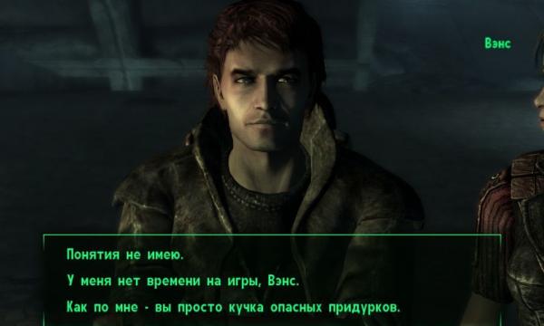 Диалоги в Fallout 3 по старой доброй традиции игр Bethesda Softworks не блещут ни изяществом, ни игрой ума, ни философским подтекстом