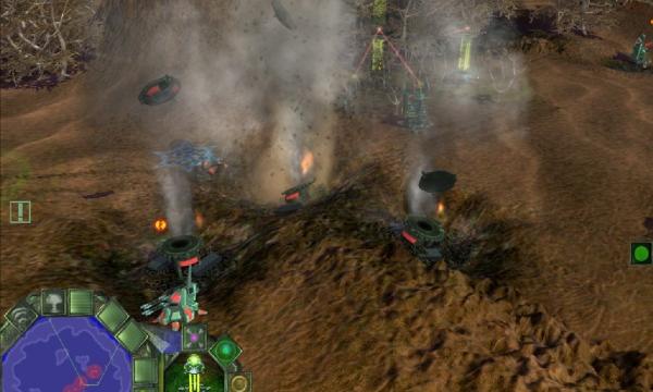 Подобная система позволяет ощутить всю прелесть быстрой позиционной войны. Миссии начинаются со скоростного возведения энергоблоков, которые позволяют изменять (а по сути – захватывать) территорию. Рельеф вокруг моментально меняется. Противник при этом не спит, занимаясь таким же активным освоением новых земель: периодически он закидывает к вам в тыл бригадиров (передвижные платформы, которые как раз трансформируются в энергоблоки). На линии фронта начинается соревнование на скорость развертывания новых групп построек, осложняющееся умением энергоблоков захватывать некоторые здания. Отдать врагу только-только возведенный завод высшего уровня крайне обидно, напряжение нарастает, а уровень адреналина в крови стремительно увеличивается (редкое для RTS дело)… И при всем при этом победить здесь можно, даже не сделав ни единого выстрела.