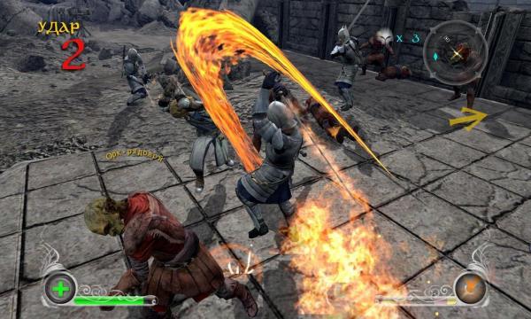 Впрочем, основная проблема не в этом. Играть в Conquest было бы можно и какое-то время даже приятно (первые пятнадцать минут драки с противником гарантированно доставляют удовольствие!), если бы не кривой дизайн и невменяемое управление. Чаще всего понять, что происходит на экране, невозможно в принципе, а точно предугадать, по кому из орков ваш герой нанесет следующий удар, бывает весьма проблематично. Поэтому частенько вы гибнете не в силу собственной криворукости, а из-за того, что враги запинали ненаглядного Фарамира где-то за пределами видимости игрока. Начав выполнять один удар, его уже невозможно отменить, чтобы начать следующий или отбежать. Таким образом, не успевший привыкнуть к местной боевой системе человек непременно потратит кучу нервов, пытаясь понять, как вообще можно выигрывать битвы. Игровой процесс в целом крайне однообразен и быстро приедается - в основном из-за примитивной комбо-системы, низкого тактического потенциала и неудачного дизайна.
