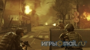 Вторая серия Advanced Warfighter не претендует на лавры симулятора спецназа, но за головотяпство и наглость тут наказывают сурово. Праздно шатающийся по переулкам солдат мгновенно становится жертвой куда более осмотрительных "повстанцев". Учуяв противника, они мигом разбегаются в разные стороны, занимая наиболее выгодные огневые позиции — за углом, под кирпичным забором или среди пуленепробиваемых (даром, что деревянных) ящиков. А если во время перестрелки бунтарь окажется под огнем и проживет достаточно долго, чтобы понять всю опасность своего положения, он немедленно отправится на поиски более спокойного места.