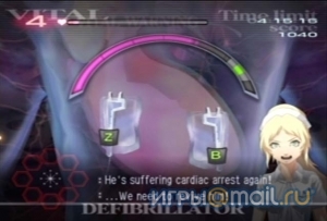 Герои щеголяют выразительной мимикой и демонстрируют на удивление правдоподобное поведение и реакцию. Что же касается самих операций, то тут все не так страшно, как может показаться: внутренние органы пациентов и различные травмы изображены схематично, поэтому их вид не вызывает отвращения. Металлический звон при переборе инструментов, электрический треск, издаваемый дефибриллятором и постоянное биение пульса создают ощущение присутствия в операционной. Музыка, постоянно нарастающая в напряженные моменты, только усиливает это впечатление. Ввиду использования кинетического управления приходится быть предельно собранным и демонстрировать отменную координацию движений. Сделать ровный разрез скальпелем невероятно сложно, поэтому лучше сразу приготовиться к тому, что поначалу половина операций будет заканчиваться летальным исходом. Несмотря на свою специфичность, Trauma Center захватывает с первых же минут. Быть хирургом нелегко, но чертовски увлекательно. Удаление опухолей, тромбов, лечение язв, переломов и разного рода ран — всем этим на полном серьезе можно заниматься часами. Мысль о том, что проведение хирургических операций может быть скучным и монотонным занятием, отметается после выполнения первых же заданий. По прошествии еще некоторого времени начинаешь ловить себя на мысли о том, как бы поаккуратнее вытащить осколки из раны, наложить шов и забинтовать.