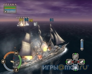 Грамотное маневрирование с поправкой на скорость ветра, игравшее ключевую роль в исторических баталиях, осталось на страницах учебников. Здешние паруса никогда не опускаются, позволяя капитанам устраивать лихие гонки по воде. Стандартные ядра летают настолько медленно, что уйти от них можно, зевая и задумчиво почесывая зад. Противник же ленив и не проявляет должной проворности, быстро утопая в огне пожаров, распространяющихся по всей палубе.