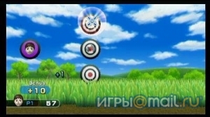 В первую же очередь вас научат прицеливаться с помощью нового контроллера и классического тира на зеленой лужайке под голубым небом. Происходящее очень напоминает популярную в свое время "Утиную охоту" (Duck Hunt), вышедшую аж два десятка лет назад на "Денди". Только на сей раз мало просто расстреливать появляющиеся на экране объекты — в некоторых случаях требуется делать это таким образом, чтобы они подскакивали вверх и не касались земли. Позднее на поле будут выбегать созданные вами же Mii-человечки, а коварные пришельцы на летающих тарелках будут пытаться их похитить. Лишь быстрая реакция и концентрация внимания станут двумя слагаемыми успешного прохождения вступительного акта Wii Play.