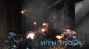 Именно безумная насыщенность действа и притягивает к Gears of War, как магнитом. Каждый новый эпизод "цепляет" чем-то особенным: перестрелки в городской черте сменяются штурмом мрачной фабрики, яростно хлещет ливень, вспышки молний озаряют безрадостный пейзаж, а где-то в недрах завода люто завывает нечто. Маркус и его напарники путешествуют на плоту, катаются на шахтерских вагонетках, колесят по улицам на футуристичном броневике, спускаются под землю, защищают осажденный особняк и захватывают несущийся поезд. Увидев все это раз, вы едва ли откажетесь повторить остросюжетный рейд по злачным местечкам Серы. А это для любой игры — главный показатель качества.