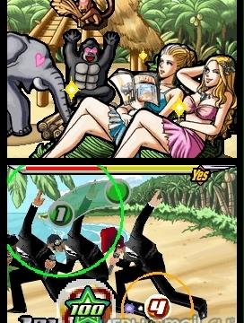 А чтобы все трое не сбились с такта и разом не попадали на землю, необходимо вовремя тыкать стилусом в экран. Играющая на фоне мелодия и сужающиеся вокруг ключевых точек круги подсказывают, в какой момент это нужно делать. Вариантов взаимодействия с сенсорным экраном немного: можно просто ткнуть в него, провести кривую, следуя за цветастым шариком, или раскрутить рулетку. Каждое удачное движение добавляет немного перкуссии в ритм и баллов в казну (чем четче попал — тем больше очков заработал); каждый промах отправляет агентов в нокаут и штрафуется падением шкалы элитометра.