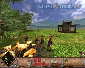 Собираясь в одном месте достаточно большой группой, солдаты одного рода войск умеют стихийно объединяться в отряды, вывешивать над собой соответствующий флаг, выстраиваться в некое подобие формации и даже что-то горланить хором. Столь элегантным образом игра избавляет нас от ненужной возни, позволяя обойтись без цифровых обозначений отрядов. Правда, в боевых условиях от этой стройности не остается и следа: пехота бежит в атаку первобытной толпой, лучники путаются под ногами у копьеносцев, а некоторые и вовсе далеко не с первого раза понимают, что им нужно куда-то идти.