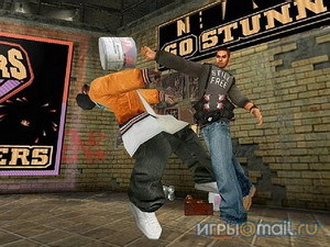 Примерно треть игрового времени мы разрисовываем стены цветными картинками, призванными пробудить в мэре совесть, а в горожанах — праведный гнев. Чтобы оставить после себя произведение искусства, а не жалкую мазню, нужно наносить краску ровно и ни в коем случае не мельчить. За каждый шедевр герой получает баллы, которые по законам рынка превращаются в новые приемы и обеспечивают прилив сил, словом, всячески способствуют выживанию во враждебной среде. Стоит передержать баллончик в одном месте, и картинка смажется, "заработок" пострадает. Проведешь рукой слишком быстро — изображение получится бледным. Так что, уличной живописи вам еще предстоит научиться.