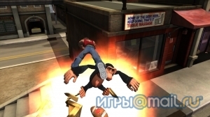 Игра открывает простор для самой изощренной фантазии, поскольку в большом городе всегда найдется, откуда красиво сигануть — остается лишь верно выбирать цели. Приятно ведь не просто войти головой в асфальт, а еще и сбить по пути случайного мотоциклиста, заодно разломав в щепки его драндулет. Или со всего размаху влететь в лобовое стекло мчащегося навстречу автомобиля, повергнув в панику несчастного водителя. Есть и трюки высшего пилотажа — падение в открытый люк по параболической дуге или столкновение в воздухе с другим участником для последующего поражения заранее намеченных мишеней. Никогда не стоит останавливаться на одном приеме — рядом всегда найдется что-нибудь не менее занимательное.