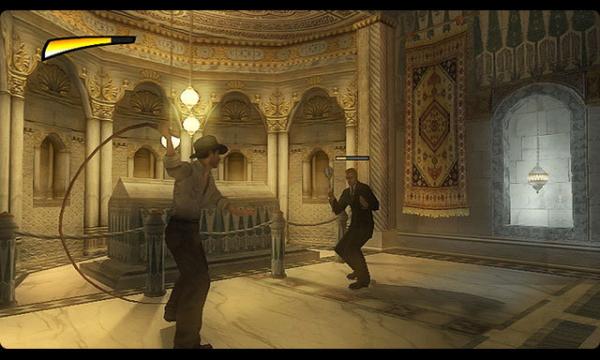 Основная идея игры понятна с первых секунд: она подарок настоящим фанатам — всем тем, кто не разлюбил Инди за долгие годы разлуки. Цитаты, отсылки, намеки и прямые заимствования из ранних частей сыплются как из рога изобилия. В определенном смысле все происходящее похоже на своего рода музей Индианы Джонса. Вот здесь у нас выряженные в парадную форму злобные фрицы в амазонских чащах, там гонки на мотоциклах из «Искателей потерянного ковчега», а на той дальней полке – каноническая сцена с вагонеткой из «Храма судьбы» в современной аранжировке. Однако аттракцион увлекателен вне зависимости от того, насколько хорошо вы знакомы с оригинальной трилогией. В сердце геймплея – чистый экшен, разнообразные игровые ситуации, сообразительные противники и постоянная смена транспорта (вплоть до танка и самолета-кукурузника) и море острых ощущений. Не удержались разработчики и от такой модной штуки, как Quick Time Events. Эпизоды, в которых необходимо вовремя давить подсвеченные на экране кнопки, призваны стать самыми зрелищными и запоминающимися.