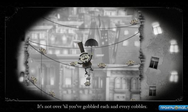 У The Misadventures of P.B. Winterbottom, тем не менее, образцово-показательная с точки зрения инди-движения история создания: начинавшаяся в качестве курсового проекта работа взяла несколько наград на различных смотрах «необычных игр» и нашла место в линейке 2 K Play. Издали таким же идеологически верным кажется и внутреннее устройство: злоключения джентльмена с инициалами П.Б. стилизованы под анимацию начала XX века, причем стилизованы очень верно. Минимум звуков, титры, поясняющие события на экране, и аккомпанемент пианино, которым сопровождались настоящие показы немого кино. Плюс эстетика в целом: П.Б. немедленно напоминает Чарли Чаплина – смешной цилиндр, характерные усы, комичная походка, сложные шестеренчатые механизмы на заднем плане, неясные силуэты странных машин, затянутые туманом, и черно-белая картинка лишь с несколькими обозначенными цветом ключевыми деталями. А на всех представленных изображениях вы обязательно заметите сразу нескольких джентльменов П.Б. в кадре одновременно и витающие в воздухе подозрительные пироги. С точки зрения обычного человека и привычного восприятия The Misadventures of P.B. Winterbottom в любой момент экранного времени выглядит предельно странно, но, как говорят в таких случаях, самое интересное начинается дальше.