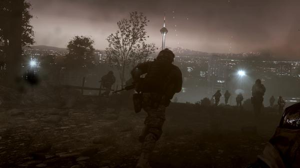 Демоверсия началась с брифинга на свежем воздухе. Проходил он в характерном для современных военных шутеров месте — пригорке в окрестностях Тегерана. Дело было ночью, поэтому видимость оказалась сильно ограниченной. Зато мы убедились, насколько правдоподобные эффекты способен демонстрировать хваленый движок игры. Свет от фонарей бил в глаза прильнувшего к земле сержанта и вызывал желание щуриться. Через несколько мгновений солдаты вскочили и ринулись на укрепления противника. Повсюду застрекотали автоматы, а темноту прорезали цепочки трассеров. Вокруг героя не взрывались танки, не вспахивали землю сбитые вертолеты, в общем, не происходило ничего из области ненаучной фантастики. Однако Battlefield 3 достойно имитирует атмосферу боевой операции и делает то, к чему должен привыкнуть любой солдат — бросает в лицо игрока грязь.
