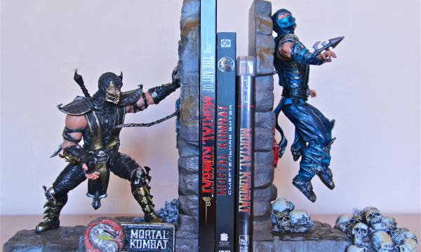 Находчивости дизайнеров остается позавидовать, ведь фигурки разделили не только из эстетических соображений. Дело в том, что они представляют собой подпорки для коробок с дисками. Надо ли говорить, что на полке такая экспозиция выглядит очень эффектно? Статуэтка обладает достаточной устойчивостью — даже если разместить между ее половинками не коллекцию Mortal Kombat, а с десяток толковых словарей, книги не упадут.
