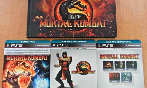 Бумажная часть содержимого включает артбук с комментариями сотрудников NetherRealm Studios о трудностях создания персонажей и декораций, а также бонусные карточки с кодами. Достаточно активировать коды в PSN или Xbox Live, чтобы получить доступ к тематическим аватаркам для вашей учетной записи, ретро-костюму бойца по имени Ермак и еще нескольким бонусам. Также нельзя не отметить стильный металлический бокс с самой игрой. Пользы от него никакой, зато на полке смотрится отменно.