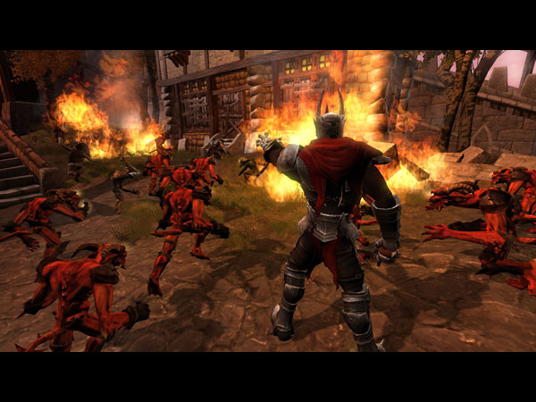Тут и там по сказочной стране разбросаны порталы в башню злодея, алтари, на которых можно обменять жизнь прихвостня на HP или ману, источники, из которых можно призвать новых недогоблинов и… различные головоломки из разряда «найдите красных прихвостней – только они смогут пройти через эту Совершенно-Непроходимую-И-Очень-Опасную-Именно-Для-Вас-Стену-Огня». Вот так и бегаем по округе, отыскивая новые племена прихвостней. Периодически перед нами встает выбор дальнейшего пути прохождения, так сказать, дилемма. Отдать еду людям, которые станут нас прославлять (местный мэр с опаской косится на горящие глаза Повелителя, когда заводит разговор о том, как было бы хорошо, если бы «доблестный рыцарь (хе-хе) спас их от злых (!) полуросликов») или забрать себе в башню (HP!)? Большой вопрос. На самом деле, со временем игровой процесс превращается в бесконечные «заскочил в комнату/выскочил на поляну, тыкнул в ближайшего врага, собрал все, побежал дальше». И это не есть хорошо. Я бы сказал, что это плохо. Уровни самобытны и оригинальны, но суть игры представляется удовольствием довольно сомнительным: indirect control в TPS? Не лучшая идея. Точнее, скорее, реализация подкачала. Доходит до того, что прихвостни сами знают что, куда и как нужно тащить. Даже если вы сами не имеете об этом ни малейшего представления. Я вам не мешаю? Нет? Спасибо, я тут в сторонке постою, хорошо?..